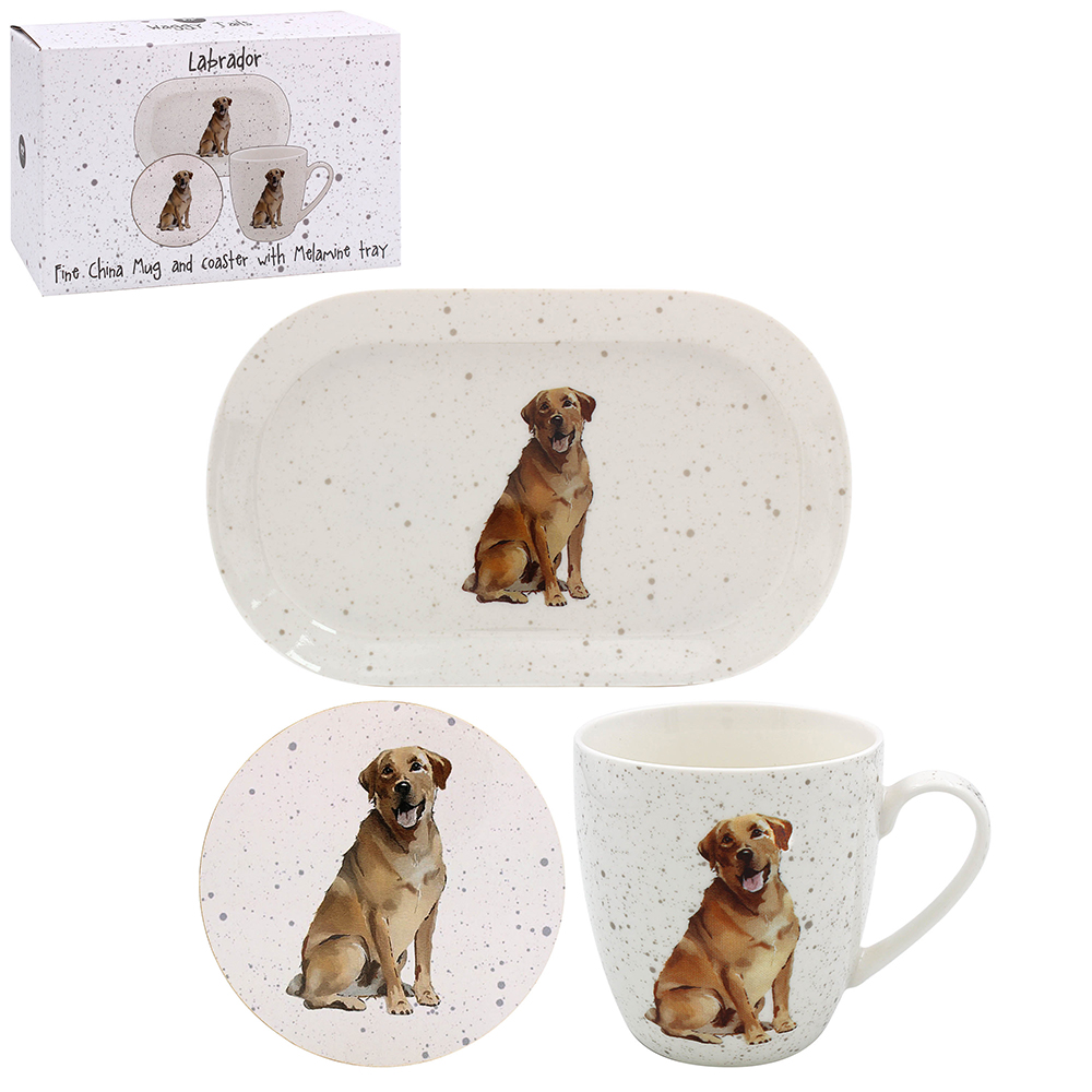 Mugg, underlägg & bricka med golden labradormotiv från Waggy Tails.
