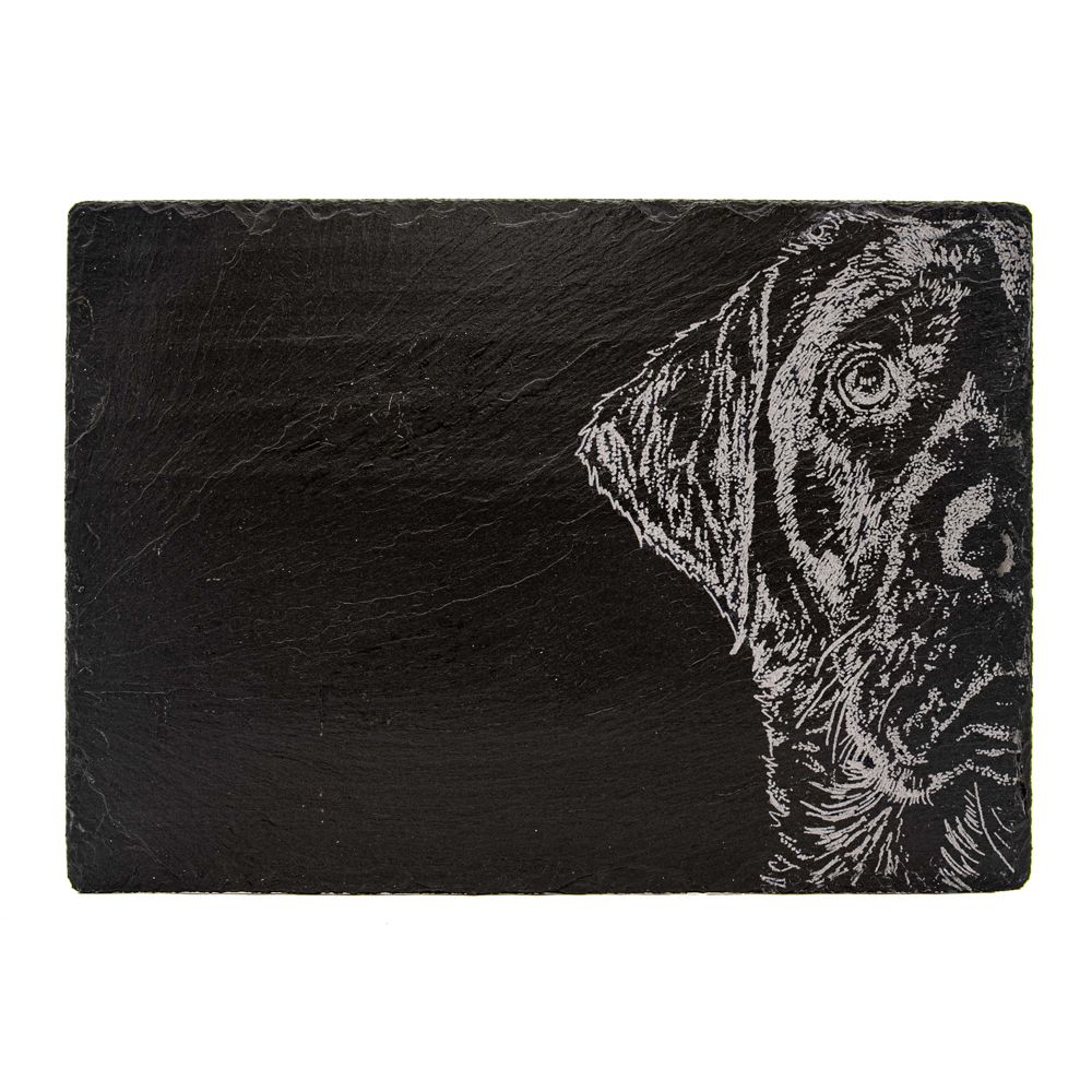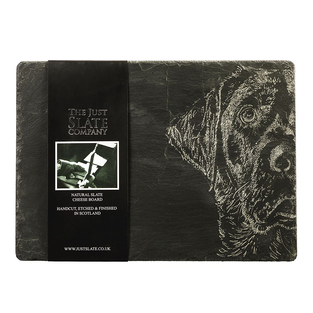 Denna skifferostbräda är ett absolut måste för de som älskar labradorer. Handgjorda och graverade med ett vackert Labrador-porträtt. Ser bra ut på ett middagsparty för att servera ett urval av läckra ostar och småbitar - en unik present eller inflyttningspresent.