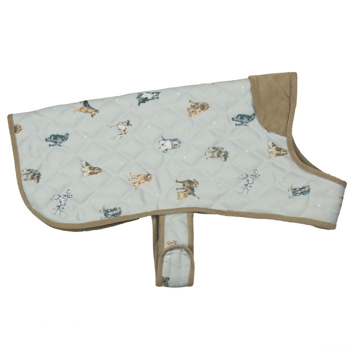 Denna quiltade kappa är den perfekta lösningen för en frusen hund! I vår mjuka Wrendalegrön, har dessa supersnygga kappor ett iögonfallande mönster med våra mest populära raser från vår "A Dog's Life" samling. Med en justerbar rem och mysigt fleecefoder. Halsbandet kan fästas genom ett hål i mitten av toppen av kappan. Mäter 550 mm hals mot svans. Denna speciella kappa har följande hundraser: Labrador, Springer Spaniel, Foxterrier, Dalmatiner, Basset Hound, Boxer, Beagle, Border Collie, Cockapoo, Schäfer, Golden Retriever och Old English Sheepdog. Kontrollera denna artikel regelbundet för tecken på slitage och byt ut den om den är skadad. I händelse av att ditt husdjur får i sig några smådelar,