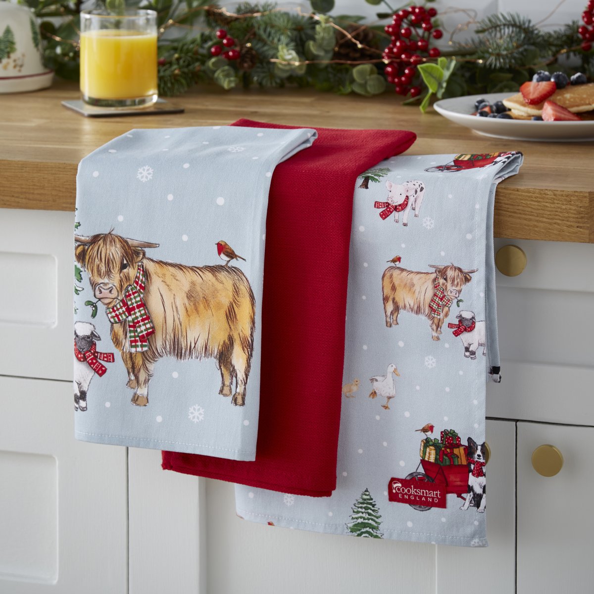 Cooksmarts Christmas On The Farm 3-pack kökshanddukar